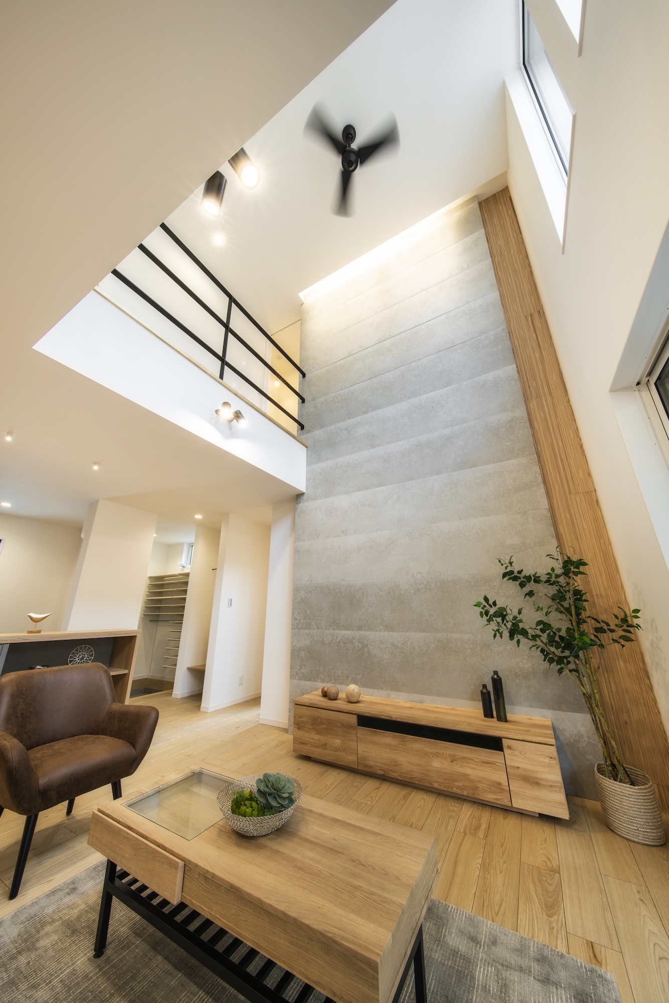 高い位置に設けられた窓からは自然光がたっぷりと差し込み、日中は照明がなくても明るく心地よい雰囲気に包まれます。