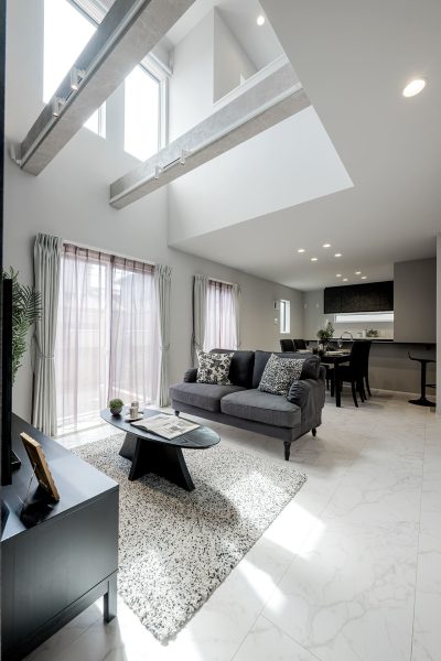 ・開放感に満ちた吹き抜けリビング