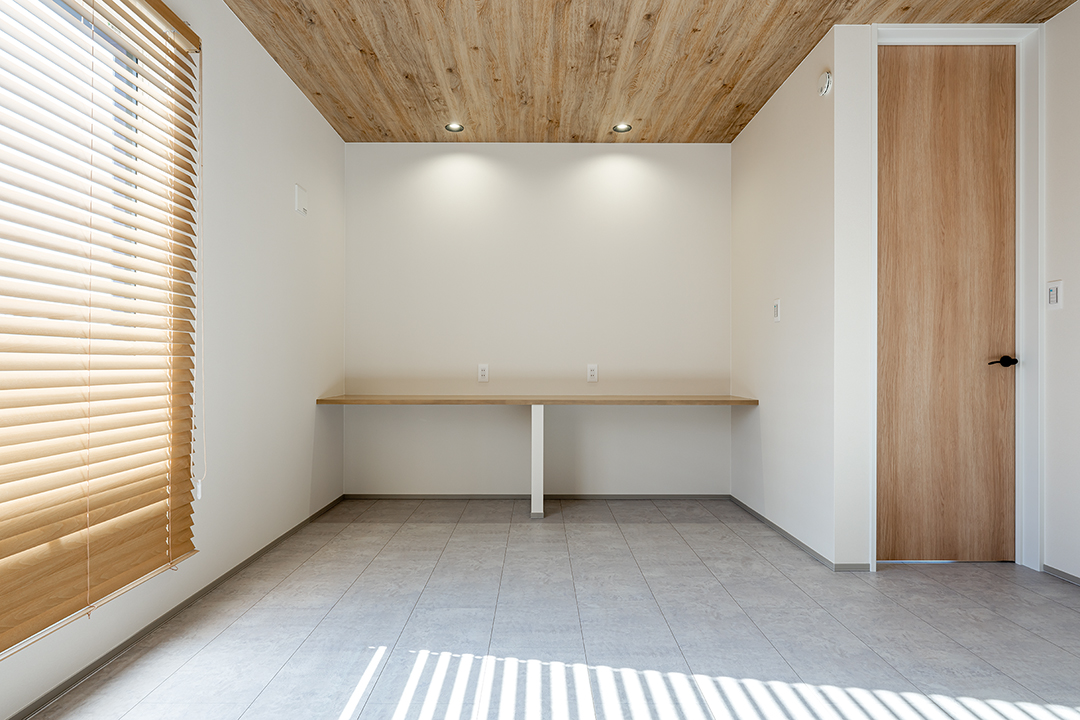 寝室には、夫婦それぞれが使える造作デスクを設けました。