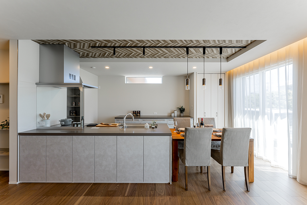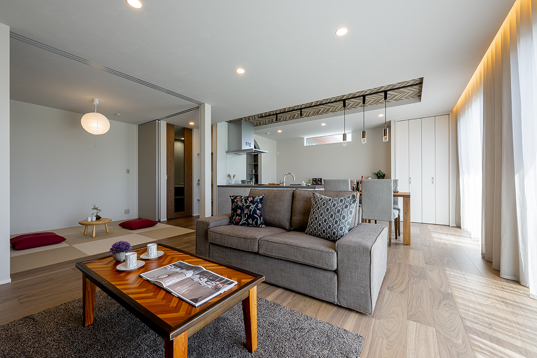 開放的なリビングと家事動線がよい家